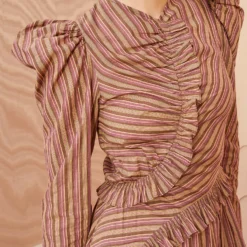 The Ines Top is a sleeveless silhouette cut from our tissue-thin cotton jersey. This tank top fits close to the body and is crafted in a beige, light pink, and burnt orange floral print.