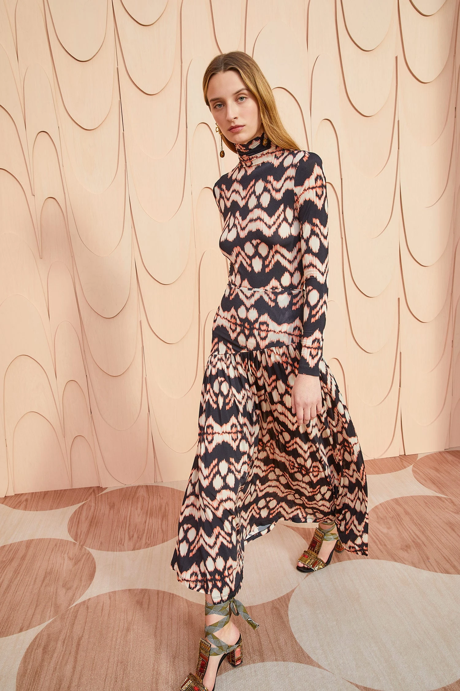 Style with our Aurelia Turtleneck, Celina Embellished High Heel and Hammered Chain Flower Drop Earring to complete the look.