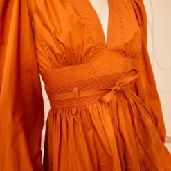 An Ulla Johnson exclusive only available in our stores or on our website, the Marietta Dress is made from water-repellent fabric that has been lovingly handcrafted in Italy using an intricate dyeing process, ensuring that each piece is one of a kind. This maxi dress showcases a splash print in pink and orange hues and is defined by its bubble hem, elegant high neckline, and open, crisscrossed back. It is finished with side-seam pockets, a side-seam zipper, and an elastic waist.